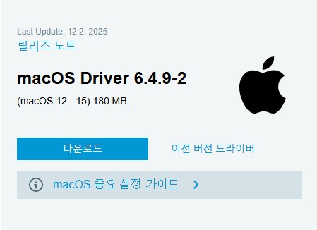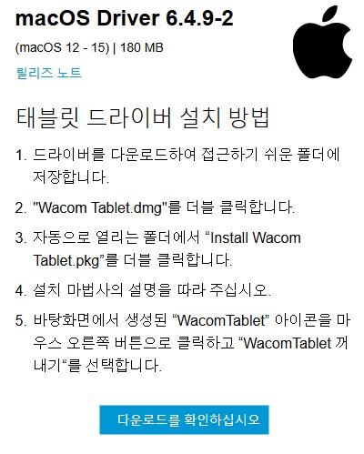 2. 와콤 드라이버 macOS 버전 다운로드 및 설치 방법
